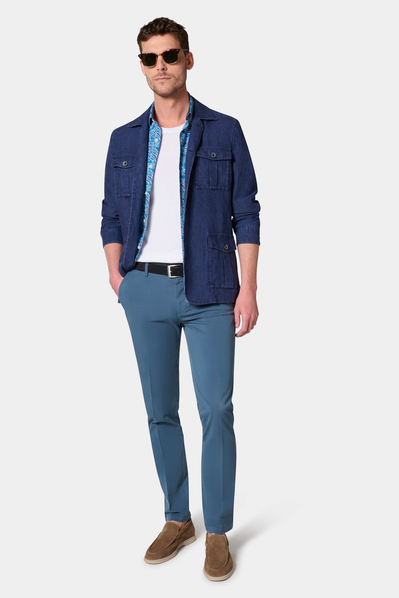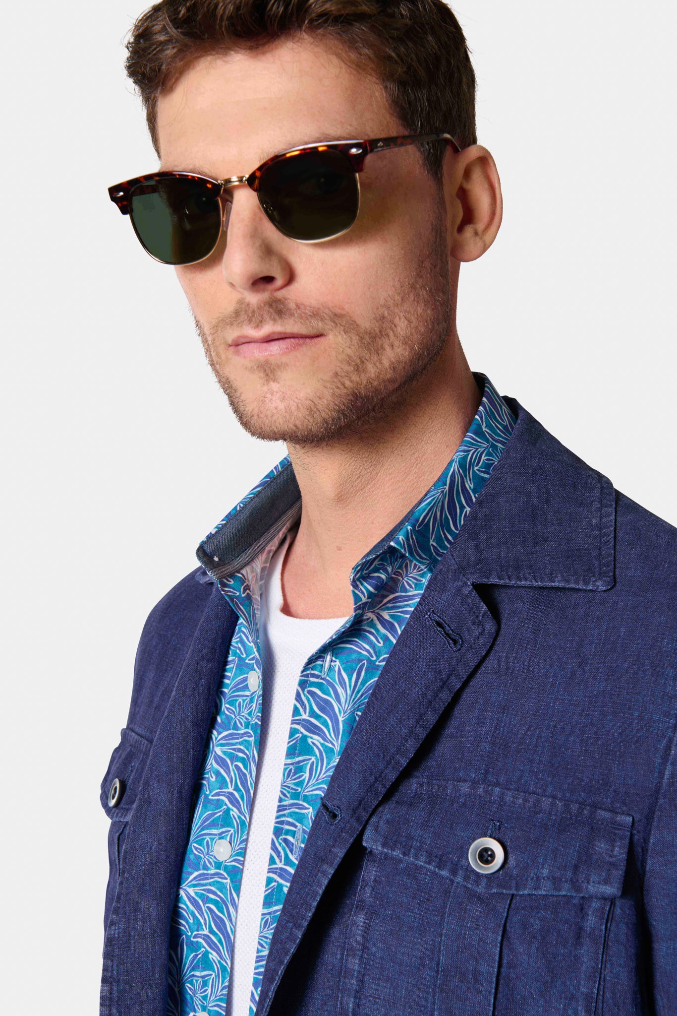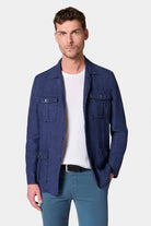 Coupe confortable Tissu en lin Col chemise Simple boutonnage Poches à soufflet avec rabat Boutons de poignet Intérieur semi-doublé fonctionnel Double fente d’aisance