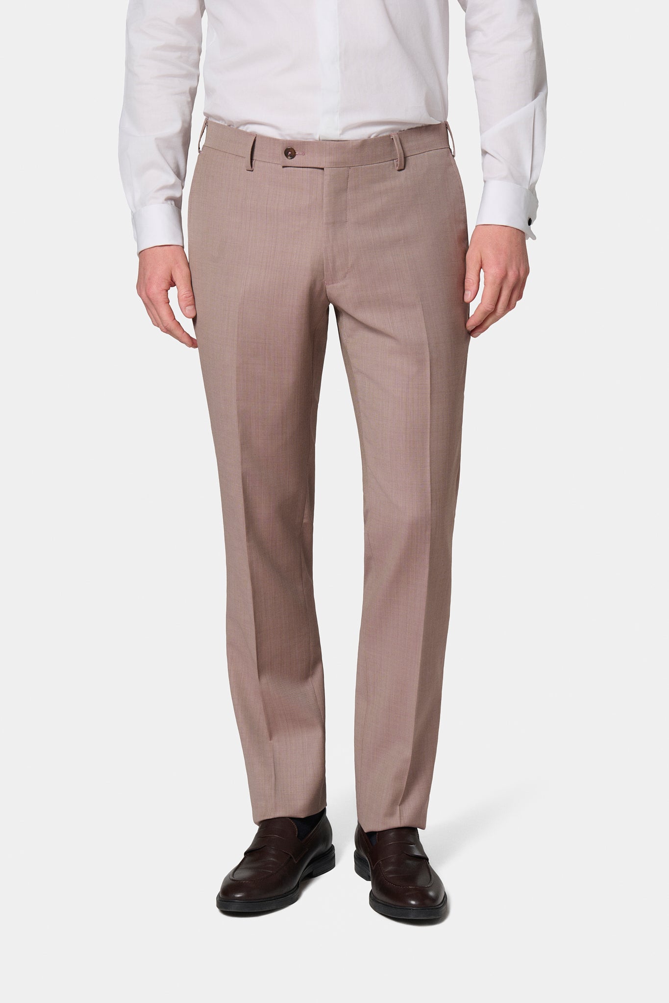 Coupe droite Tissu en laine vierge " Natural stretch " Hausse de ceinture sartoriale stretch Fermeture avec zip et crochet sous-patte Poches italiennes à l'avant Poches passepoilées boutonnée au dos Jambes semi-doublées La longueur de nos pantalons de costumes est ajustable selon vos préférences grâce à leur ourlet surfilé